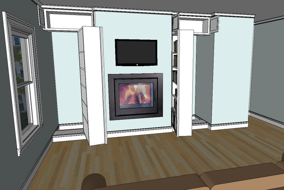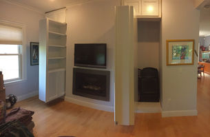The client wanted to use the small spaces flanking the fireplace as storage and wanted some book storage as well. Figured I would just do both. The hinges were purchased from a store that specializes in secret doors, the rest was made from scratch.